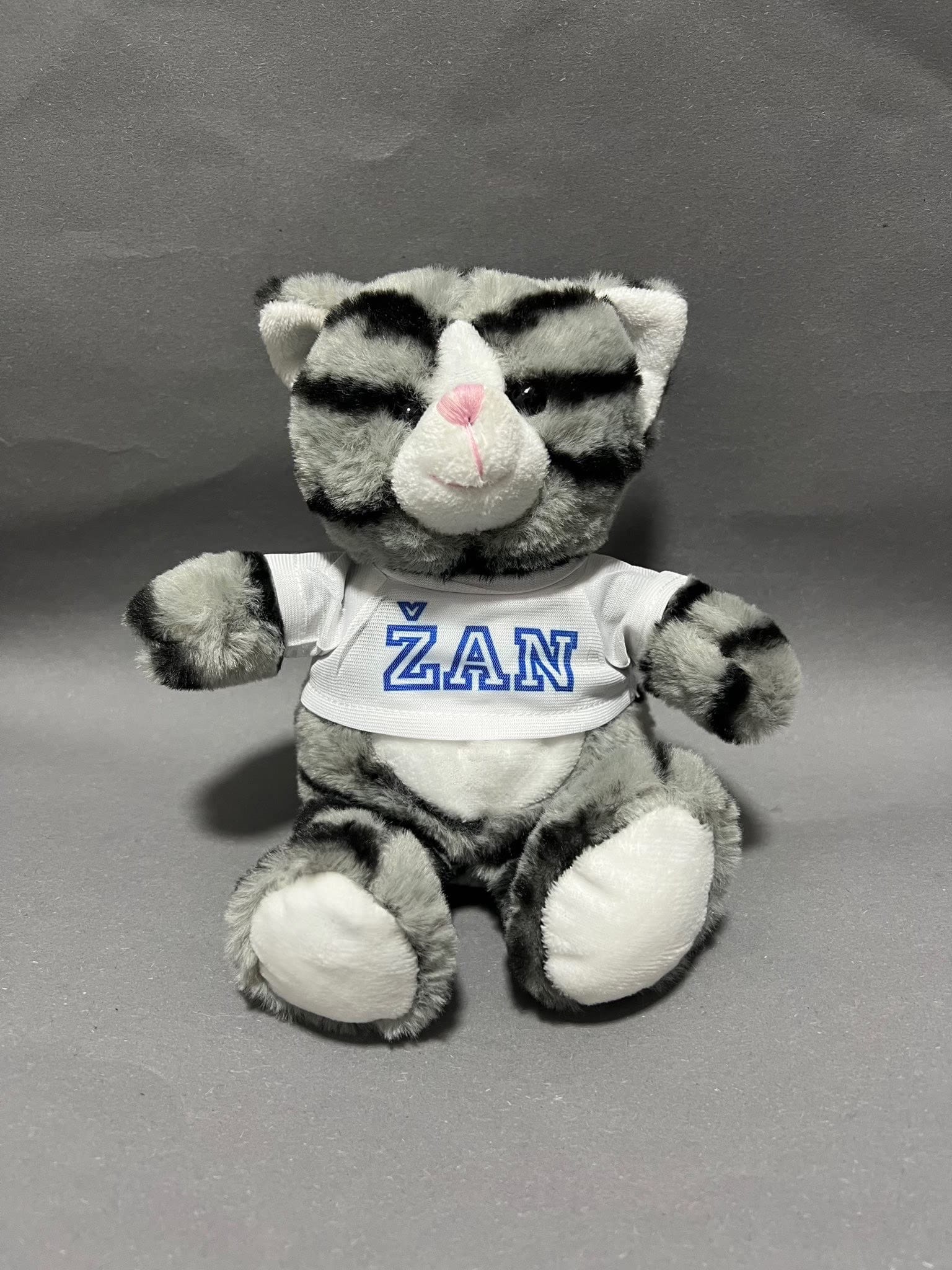 Ta mehka, kakovostno izdelana mačka je popolna spremljevalka za otroke, zaljubljence ali vse, ki obožujejo mačje crkljanje. Na njeno majico lahko natisnemo ime po tvoji želji, zato postane čisto tvoja – unikatna in nepozabna.