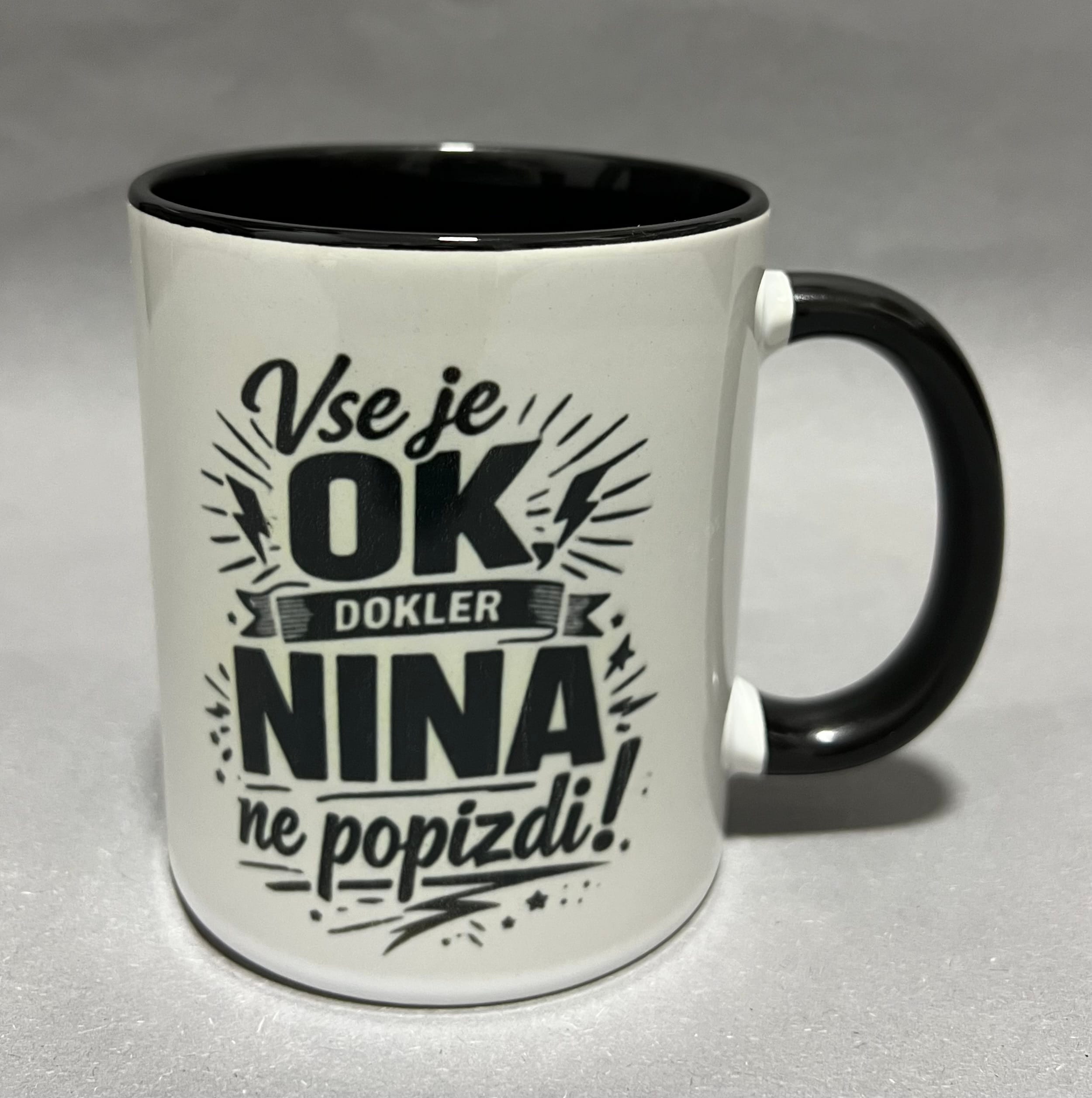 Popestri jutra z zabavno skodelico, ki vedno pove resnico. Ta personalizirana skodelica z imenom je popolna izbira za vse, ki imajo smisel za humor in znajo ceniti iskrenost ob prvi kavi. Ime na skodelici lahko prilagodiš po želji – ker vsi vemo, da je vse v redu… dokler ni več.
